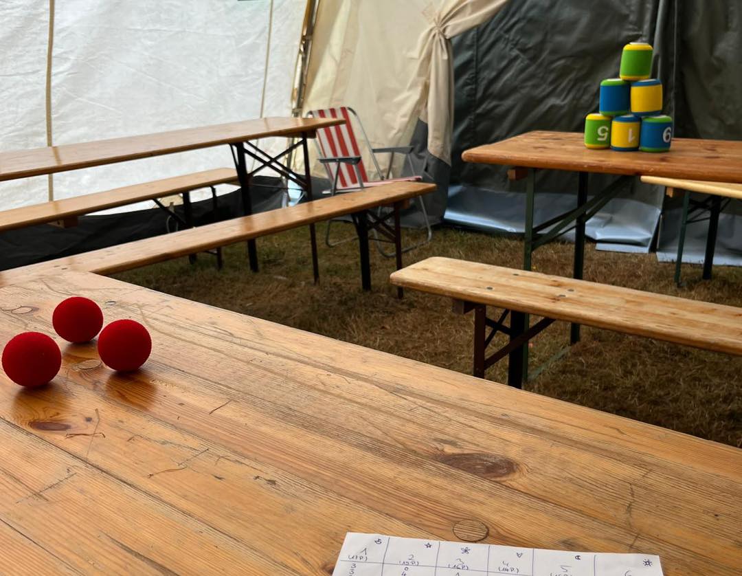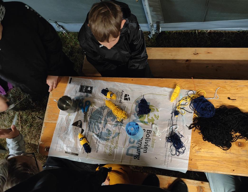 Im Anschluss an unser Frühstück haben wir bei den Schützen mit dem Blasrohr geschossen oder in unseren Großraumzelten (geschützt vor Witterung) Schurken gebastelt und Brettspiele gespielt bis es dann auch schon zum Mittagessen ging.