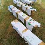 Mit einem Themenvormittag haben wir die Regenschauer am Morgen überbrückt. Es wurden T-Shirts bemalt, Minion-Masken gebastelt, die Schurkengläser vom Vortag bewundert und der jährliche Zeltlager-Gottesdienst wurde vorbereitet
